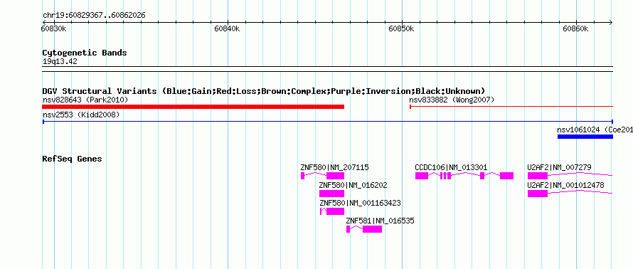 | Known Genes | CCDC106, U2AF2, ZNF580, ZNF581 |