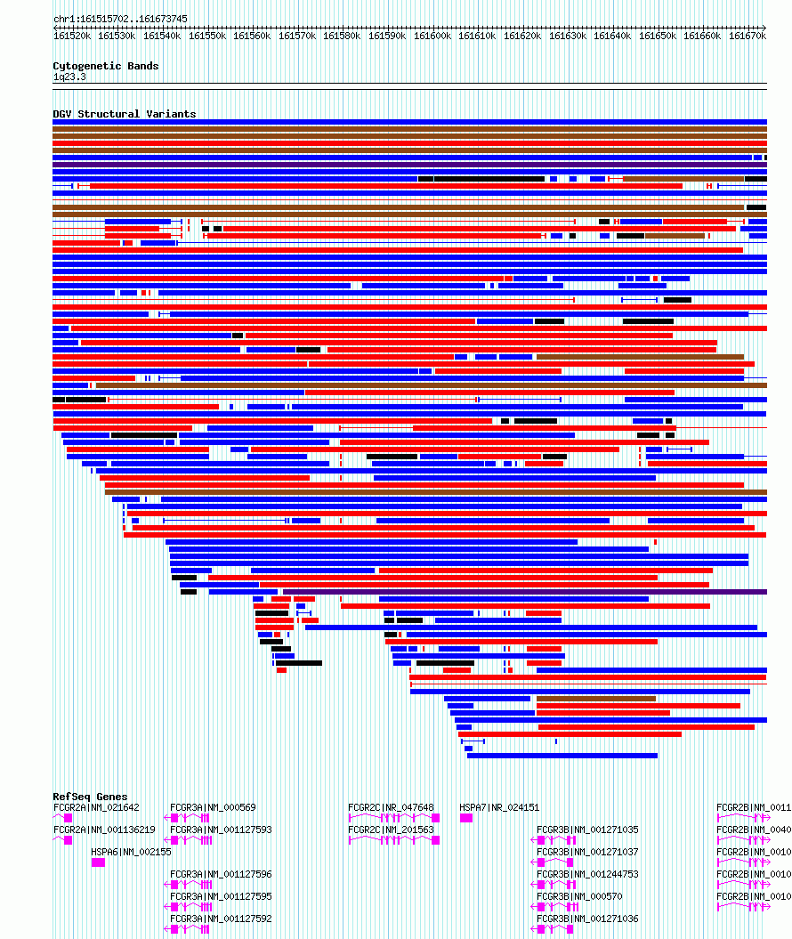 | | Variant Type | CNV duplication | | Copy Number | | | Allele State | | | Allele Origin | | | Probe Count | | | Validation Flag | | | Merged Status | M | | Merged Variants | | | Supporting Variants | nssv14105026 | | Samples | sample42 | | Known Genes | FCGR2A, FCGR2B, FCGR2C, FCGR3A, FCGR3B, HSPA6, HSPA7 | | Method | Oligo aCGH | | Analysis | | | Platform | | | Comments | | | Reference | Lu_et_al_2017 | | Pubmed ID | 28705883 | | Accession Number(s) | nsv3111292