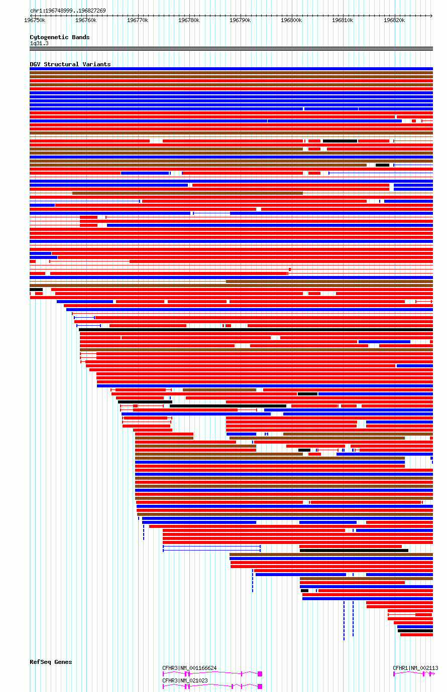 | | Variant Type | CNV deletion | | Copy Number | | | Allele State | | | Allele Origin | | | Probe Count | | | Validation Flag | | | Merged Status | M | | Merged Variants | dgv98n145 | | Supporting Variants | nssv14088369, nssv14083262 | | Samples | sample187, sample236 | | Known Genes | CFHR1, CFHR3 | | Method | Oligo aCGH | | Analysis | | | Platform | | | Comments | | | Reference | Lu_et_al_2017 | | Pubmed ID | 28705883 | | Accession Number(s) | nsv3112420