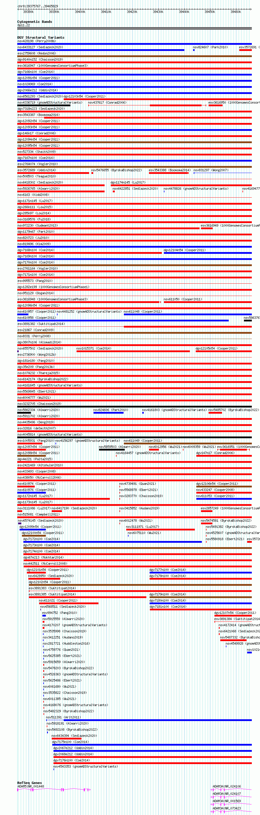 Variant DetailsVariant: nsv3113994| Internal ID | 21297260 | | Landmark | | | Location Information | | | Cytoband | 8p11.22 | | Allele length | | Assembly | Allele length | | hg38 | 90063 | | hg19 | 90063 |
