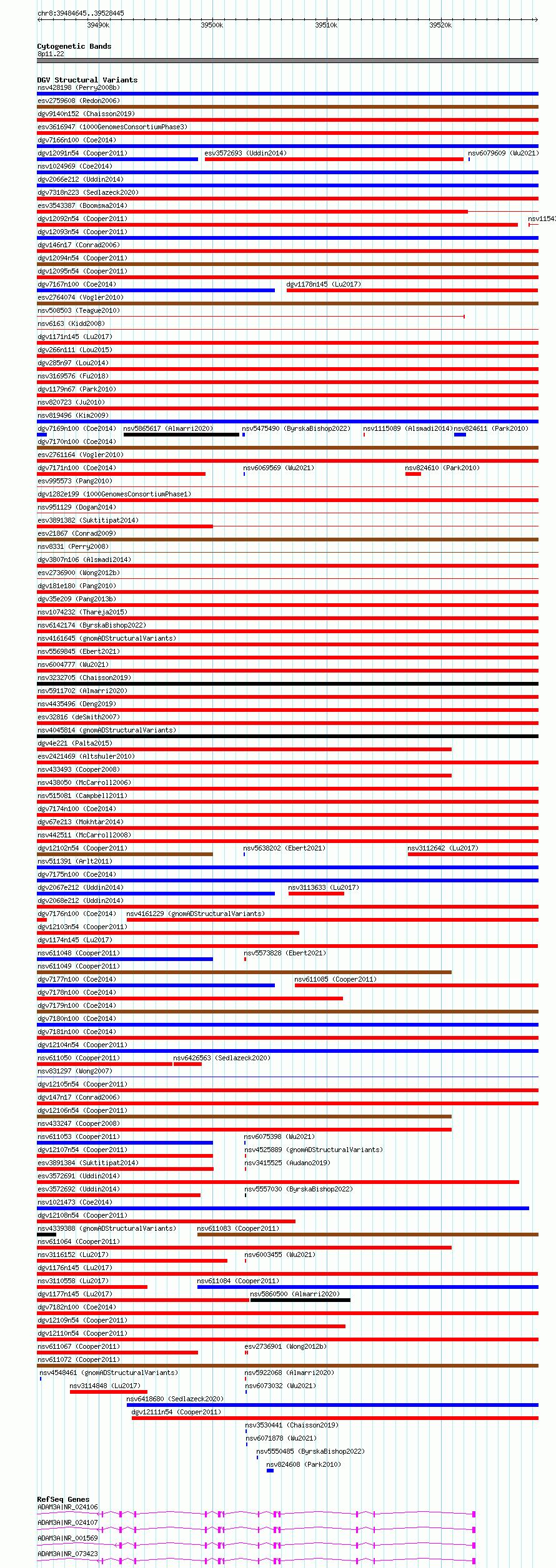 Variant DetailsVariant: nsv3115960| Internal ID | 21299226 | | Landmark | | | Location Information | | | Cytoband | 8p11.22 | | Allele length | | Assembly | Allele length | | hg38 | 43801 | | hg19 | 43801 |