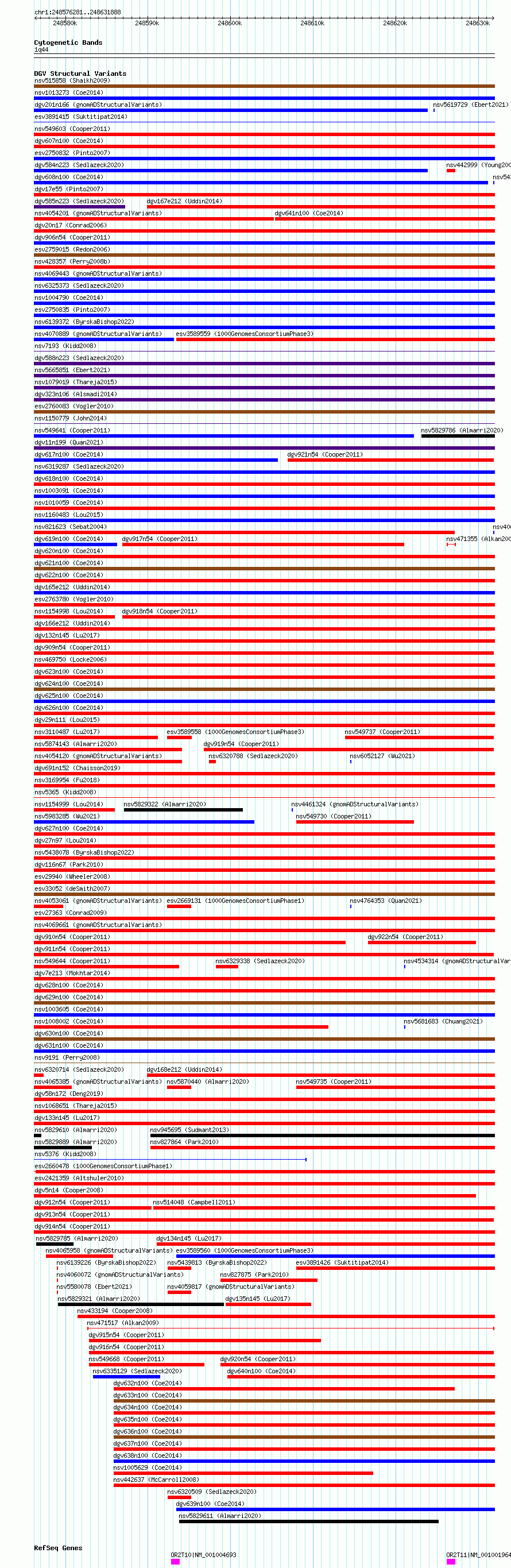 Variant DetailsVariant: nsv3117756| Internal ID | 21301022 | | Landmark | | | Location Information | | | Cytoband | 1q44 | | Allele length | | Assembly | Allele length | | hg38 | 55608 | | hg19 | 55608 |