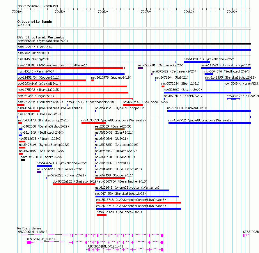 Variant DetailsVariant: nsv3219312| Internal ID | 22364369 | | Landmark | | | Location Information | | | Cytoband | 7q11.23 | | Allele length | | Assembly | Allele length | | hg38 | 1936 | | hg19 | 1936 |