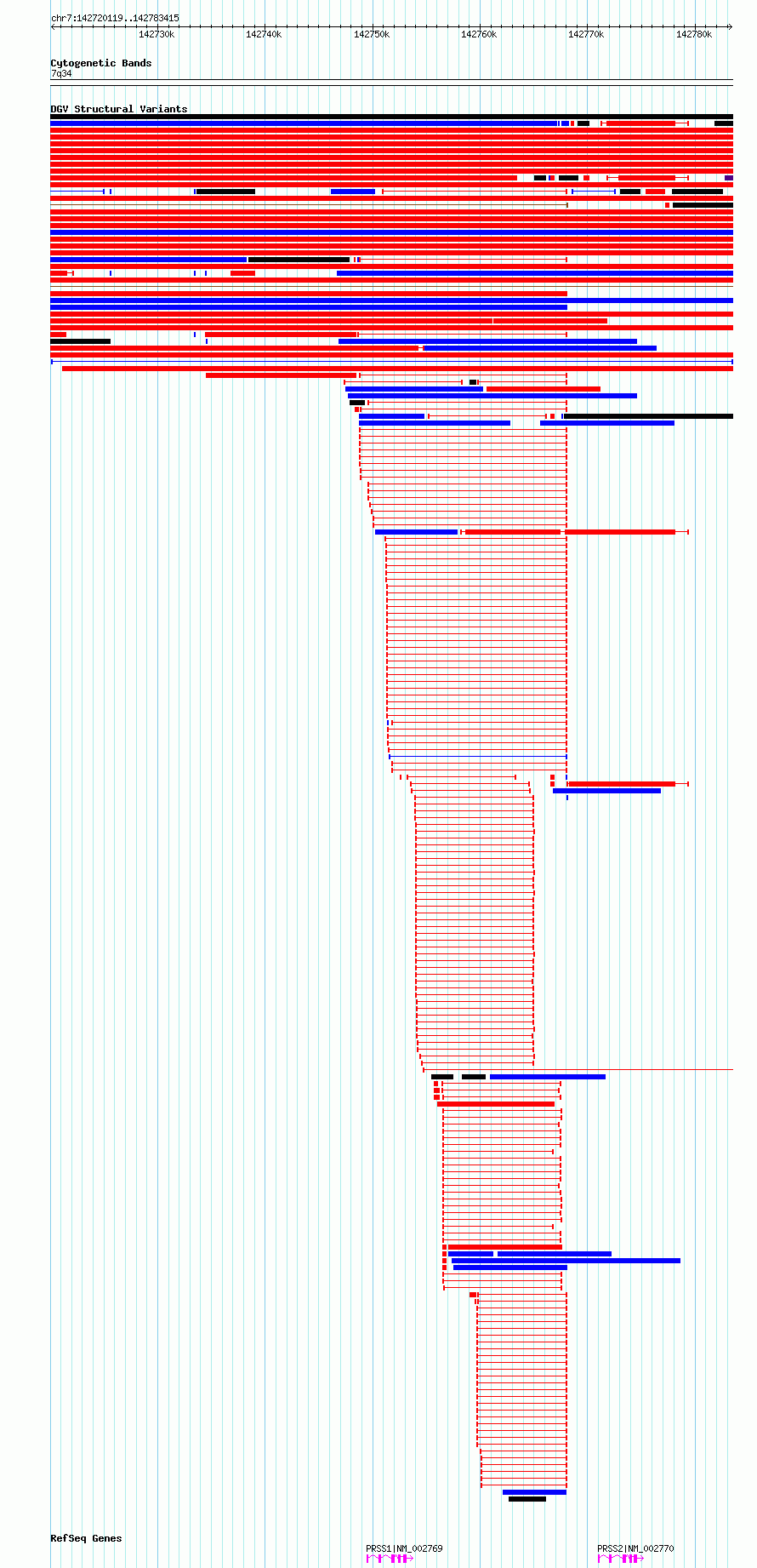 | | Variant Type | CNV insertion | | Copy Number | | | Allele State | | | Allele Origin | | | Probe Count | | | Validation Flag | | | Merged Status | M | | Merged Variants | | | Supporting Variants | nssv14278591 | | Samples | NA19238 | | Known Genes | PRSS1, PRSS2, PRSS3P2 | | Method | Optical mapping | | Analysis | BioNano Genomics proprietary analysis | | Platform | BioNano Genomics | | Comments | | | Reference | Chaisson_et_al_2019 | | Pubmed ID | 30992455 | | Accession Number(s) | nsv3220567