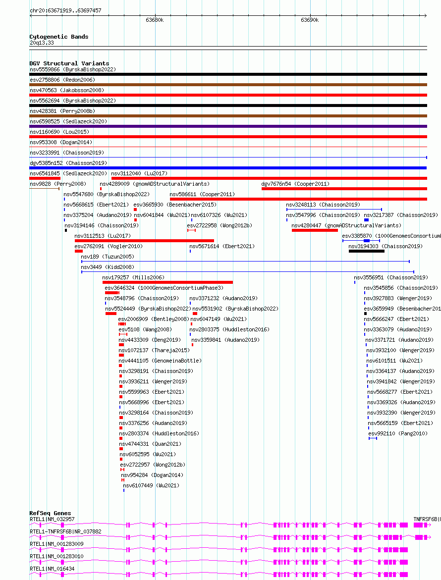 Variant DetailsVariant: nsv3232241| Internal ID | 22372452 | | Landmark | | | Location Information | | | Cytoband | 20q13.33 | | Allele length | | Assembly | Allele length | | hg38 | 9370 | | hg19 | 9370 |