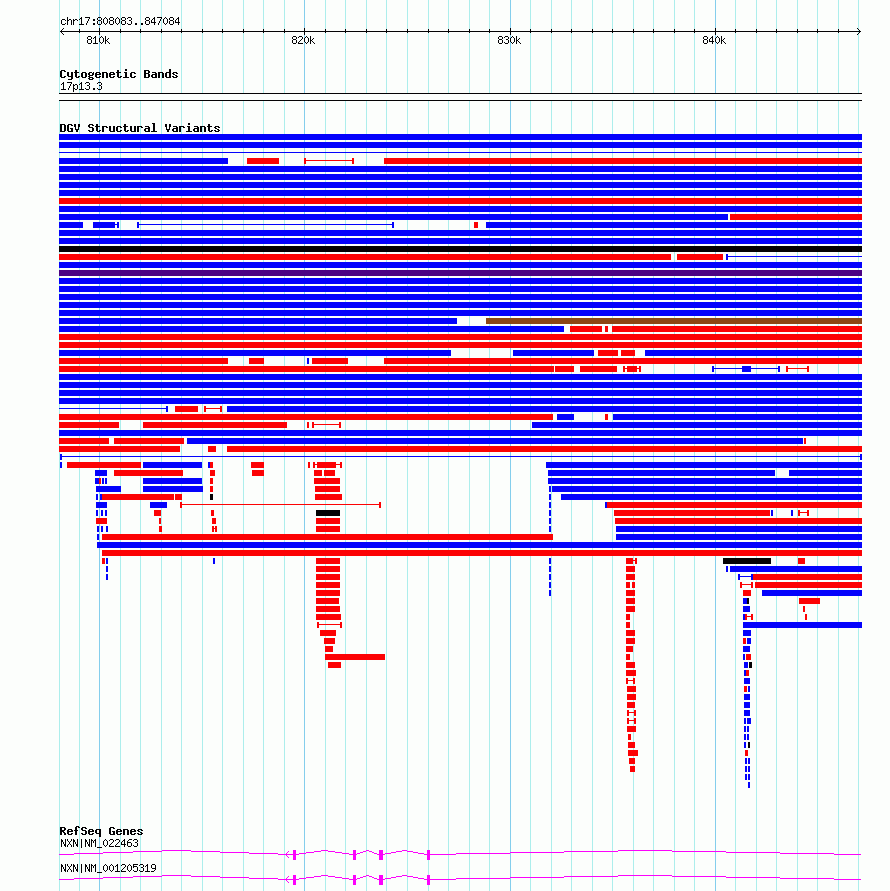 Variant DetailsVariant: nsv3235011| Internal ID | 22373176 | | Landmark | | | Location Information | | | Cytoband | 17p13.3 | | Allele length | | Assembly | Allele length | | hg38 | 2022 | | hg19 | 2022 |