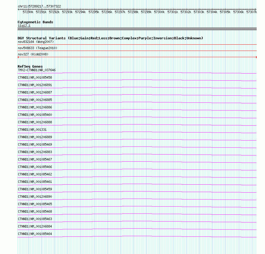| Known Genes | CTNND1, TMX2-CTNND1 |
