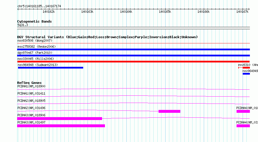 Variant DetailsVariant: nsv330045 | Internal ID | 16779539 | | Landmark | | | Location Information | | | Cytoband | 5q31.3 | | Allele length | | Assembly | Allele length | | hg38 | 5990 | | hg19 | 5990 | | hg18 | 5990 | | hg17 | 5990 |