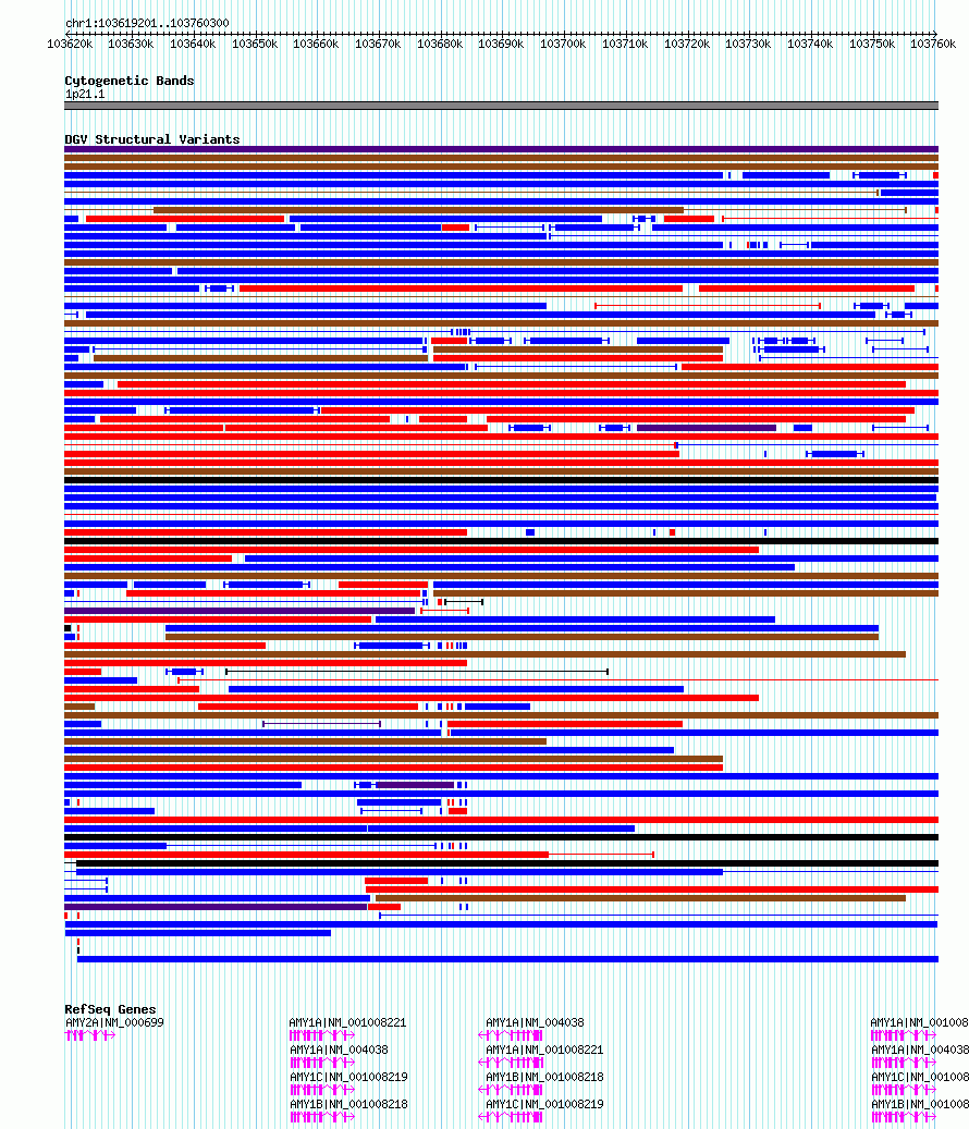 | | Variant Type | CNV duplication | | Copy Number | | | Allele State | | | Allele Origin | | | Probe Count | | | Validation Flag | | | Merged Status | M | | Merged Variants | | | Supporting Variants | nssv14486213, nssv14485105, nssv14478831, nssv14484500, nssv14478775, nssv14478716, nssv14475883 | | Samples | CHM13, HG02106, HG04217, HX1, NA19434, HG00733, HG00514 | | Known Genes | AMY1A, AMY1B, AMY1C, AMY2A | | Method | Sequencing | | Analysis | Read and contig alignments were done with BLASR. The Celera assembler (8.3rc2) was used to assemble RS II samples (CHM1, CHM13, HG00514, HG00733, NA19240, HG02818, NA19434, HG01352, HG02059, NA12878, and HG04217, and Canu (1.7) was used for Sequel samples (HG02106 and HG00268). Variant calling was performed with SMRT-SV (10.1101/gr.214007.116). | | Platform | PacBio RS II P6C4, PacBio Sequel v2.1 | | Comments | | | Reference | Audano_et_al_2019 | | Pubmed ID | 30661756 | | Accession Number(s) | nsv3319678
