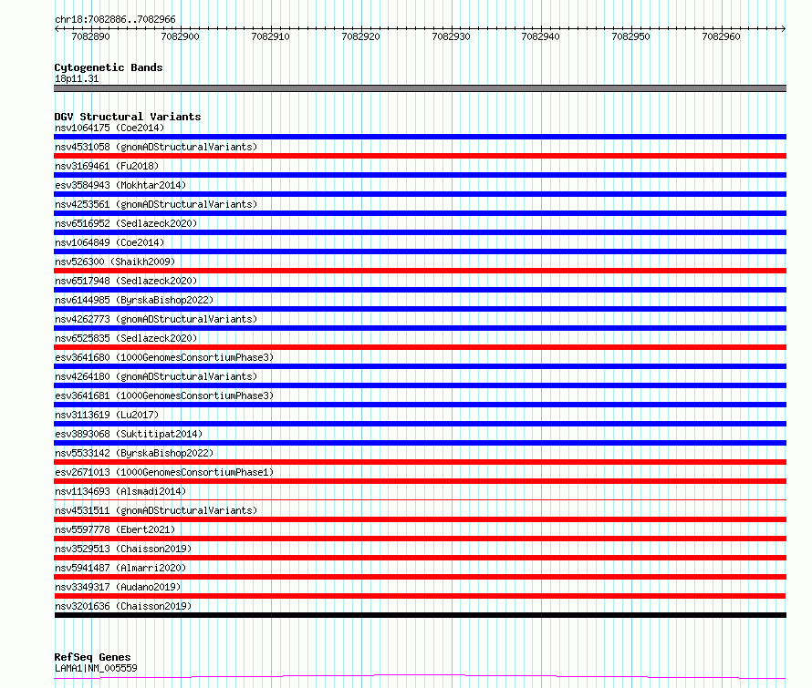 Variant DetailsVariant: nsv3349317| Internal ID | 19780295 | | Landmark | | | Location Information | | | Cytoband | 18p11.31 | | Allele length | | Assembly | Allele length | | hg38 | 81 | | hg19 | 81 |