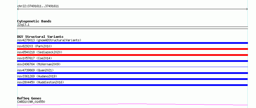Variant DetailsVariant: nsv3361269 | Internal ID | 19792247 | | Landmark | | | Location Information | | | Cytoband | | | Allele length | | Assembly | Allele length | | hg38 | 313 |