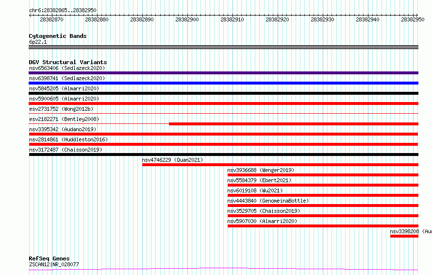 Variant DetailsVariant: nsv3395342| Internal ID | 19826319 | | Landmark | | | Location Information | | | Cytoband | 6p22.1 | | Allele length | | Assembly | Allele length | | hg38 | 86 | | hg19 | 86 |