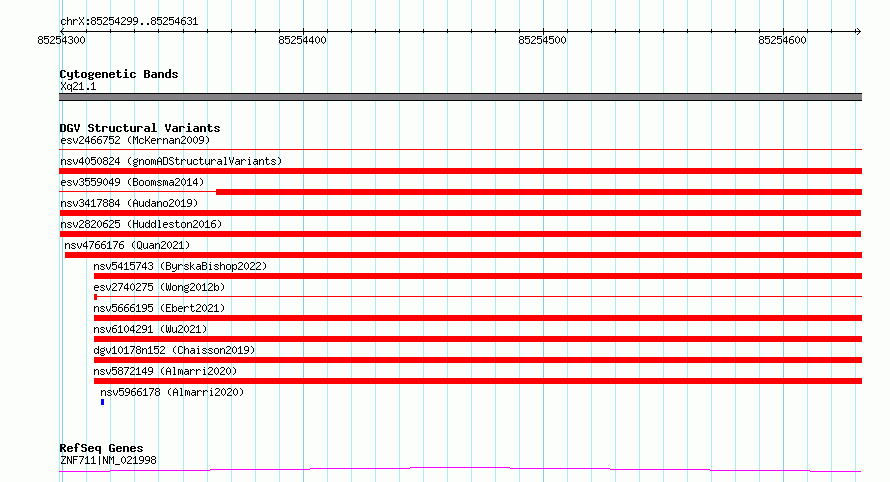 Variant DetailsVariant: nsv3417884 | Internal ID | 19848859 | | Landmark | | | Location Information | | | Cytoband | Xq21.1 | | Allele length | | Assembly | Allele length | | hg38 | 333 | | hg19 | 333 |