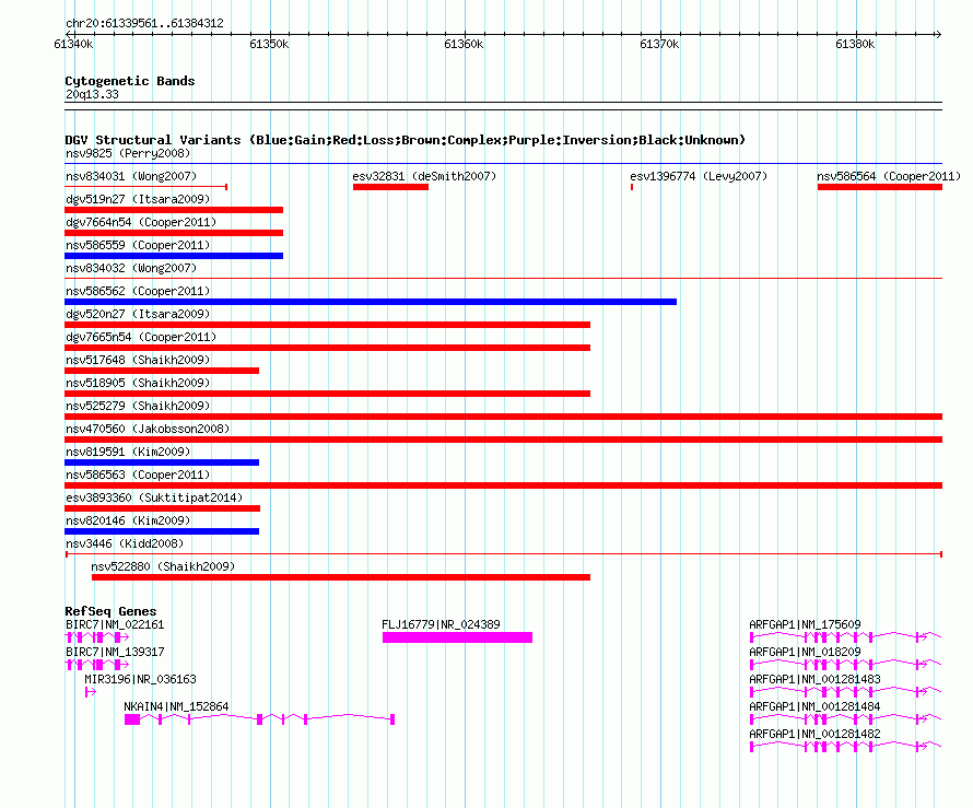| Known Genes | ARFGAP1, BIRC7, FLJ16779, MIR3196, NKAIN4 |