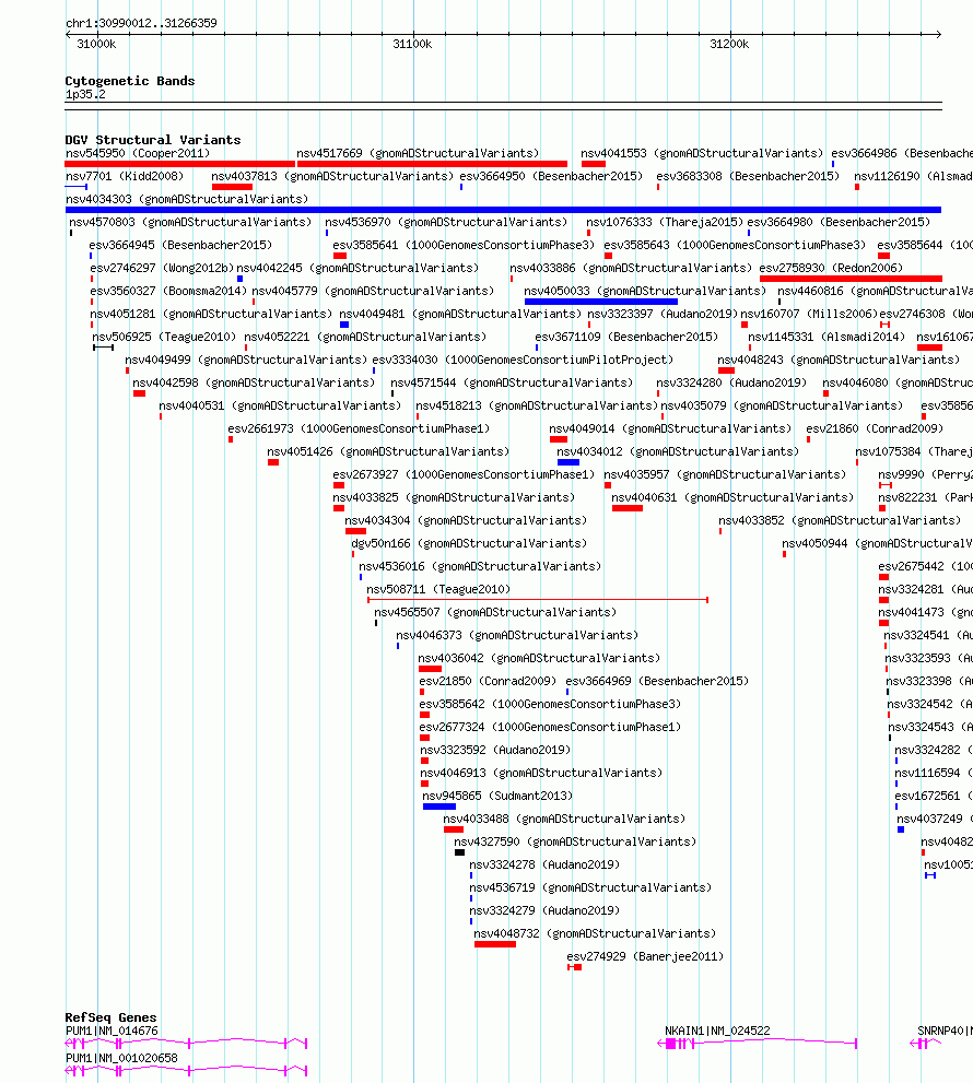 Variant DetailsVariant: nsv4034303 | Internal ID | 19818137 | | Landmark | | | Location Information | | | Cytoband | 1p35.2 | | Allele length | | Assembly | Allele length | | hg38 | 276348 | | hg19 | 276348 |