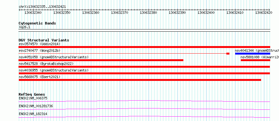 chrX:130632335..130632421hg38UCSC Ensembl