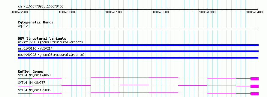 chrX:100677896..100678406hg38UCSC Ensembl