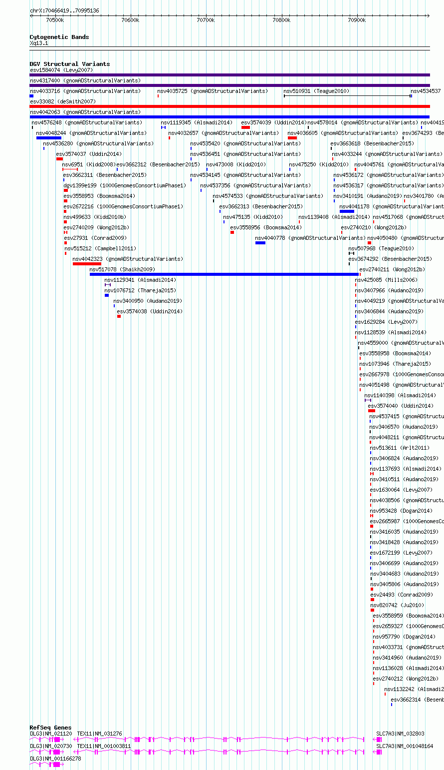 | Variant Type | CNV duplication | Copy Number | | Allele State | | Allele Origin | | Probe Count | | Validation Flag | | Merged Status | M | Merged Variants | | Supporting Variants | nssv15989577 | Samples | | Known Genes | DLG3, SLC7A3, TEX11 | Method | Sequencing | Analysis | SV calls were generated using multi-algorithm consensus pipeline involving raw evidence assessment, filtering, clustering, genotyping, alternative allele structure resolution, and gene annotation. These methods are described in detail in the gnomAD-SV preprint [Collins*, Brand*, et al., bioRxiv (2019)|https://www.biorxiv.org/content/10.1101/578674v1], and are largely based on methods developed in [Werling et al., Nat. Genet. (2018)|https://www.ncbi.nlm.nih.gov/pubmed/29700473]. | Platform | | Comments | | Reference | gnomAD_Structural_Variants | Pubmed ID | 12345678 | Accession Number(s) | nsv4042063