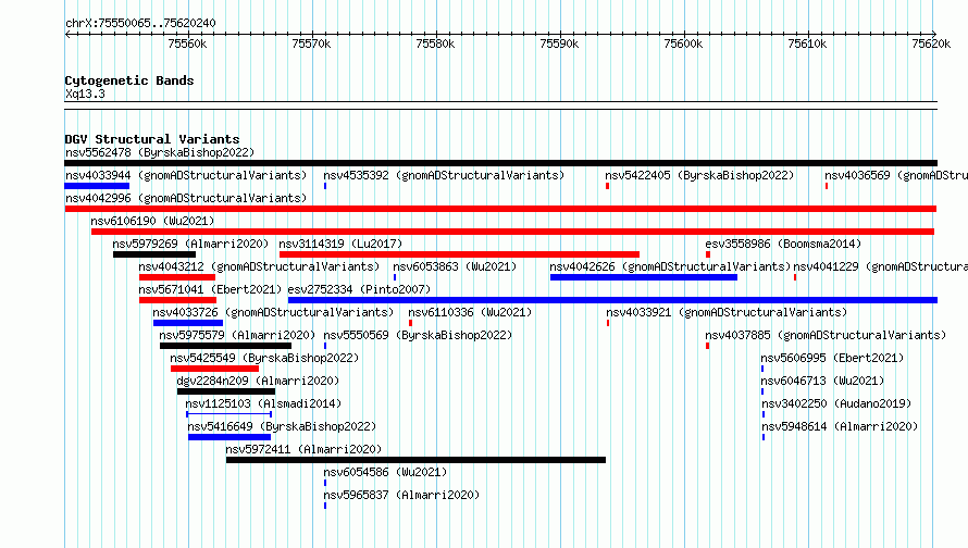 chrX:75550065..75620240hg38UCSC Ensembl