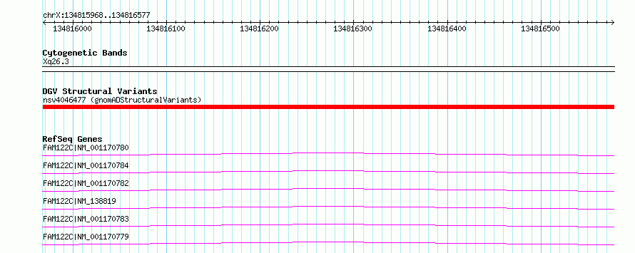 chrX:133949998..133950607hg19UCSC Ensembl
