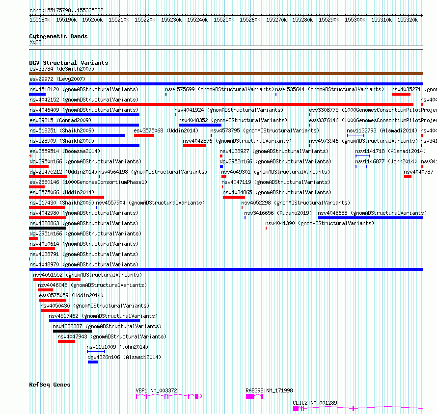 Variant DetailsVariant: nsv4048970 | Internal ID | 19828422 | | Landmark | | | Location Information | | | Cytoband | Xq28 | | Allele length | | Assembly | Allele length | | hg38 | 149535 | | hg19 | 150576 |