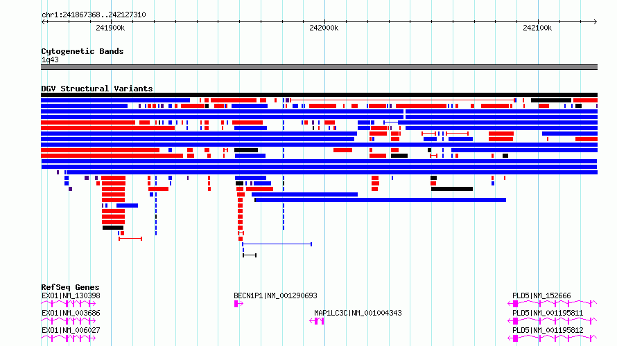 Variant DetailsVariant: nsv4061006 | Internal ID | 20308391 | | Landmark | | | Location Information | | | Cytoband | 1q43 | | Allele length | | Assembly | Allele length | | hg38 | 259943 | | hg19 | 259943 |
