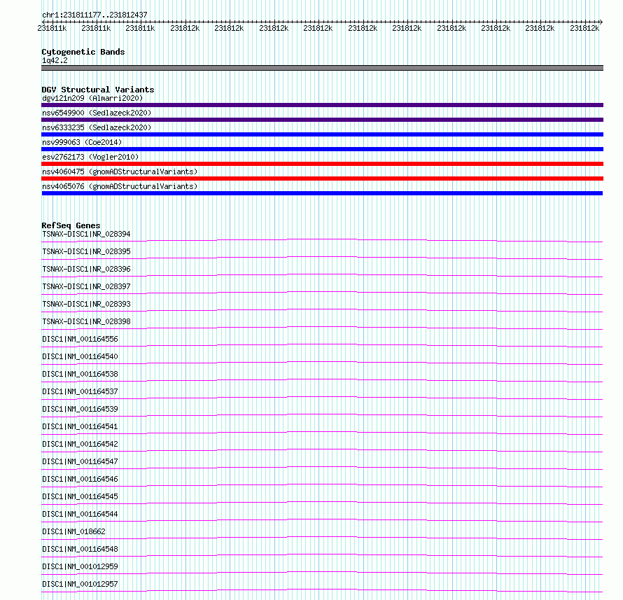 Known GenesDISC1, TSNAX-DISC1