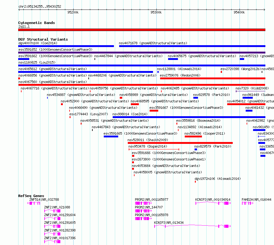 Variant DetailsVariant: nsv4067560 | Internal ID | 19966478 | | Landmark | | | Location Information | | | Cytoband | 2q11.1 | | Allele length | | Assembly | Allele length | | hg38 | 295998 | | hg19 | 296001 |