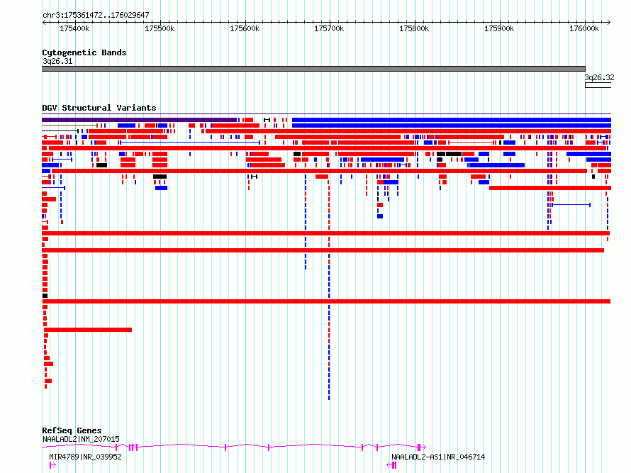 Variant DetailsVariant: nsv4099685 | Internal ID | 20336812 | | Landmark | | | Location Information | | | Cytoband | 3q26.31 | | Allele length | | Assembly | Allele length | | hg38 | 668176 | | hg19 | 668175 |