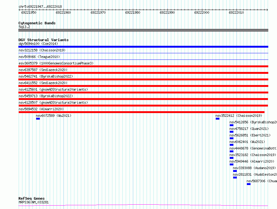 chr5:69221947..69222018hg38UCSC Ensembl