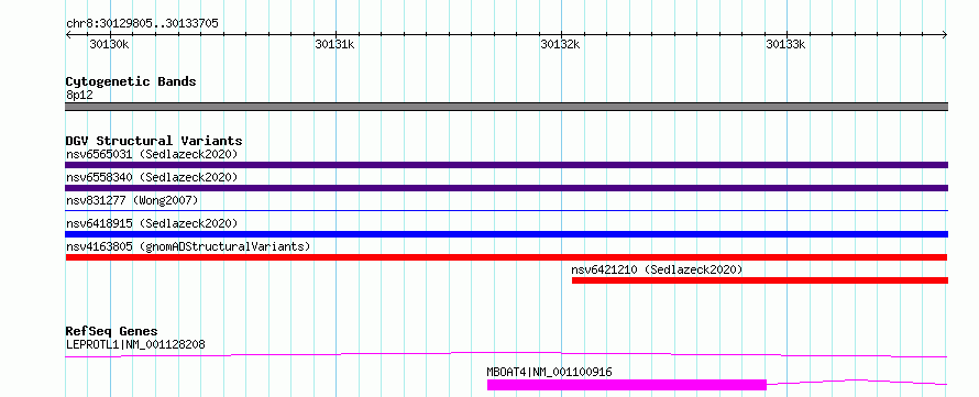 Variant DetailsVariant: nsv4163805 | Internal ID | 20383108 | | Landmark | | | Location Information | | | Cytoband | 8p12 | | Allele length | | Assembly | Allele length | | hg38 | 3901 | | hg19 | 3901 |