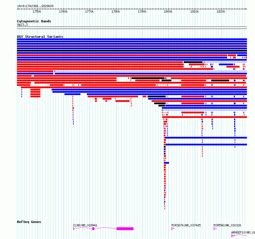 Variant DetailsVariant: nsv4168518 | Internal ID | 20386548 | | Landmark | | | Location Information | | | Cytoband | 8p23.3 | | Allele length | | Assembly | Allele length | | hg38 | 87242 | | hg19 | 87242 |