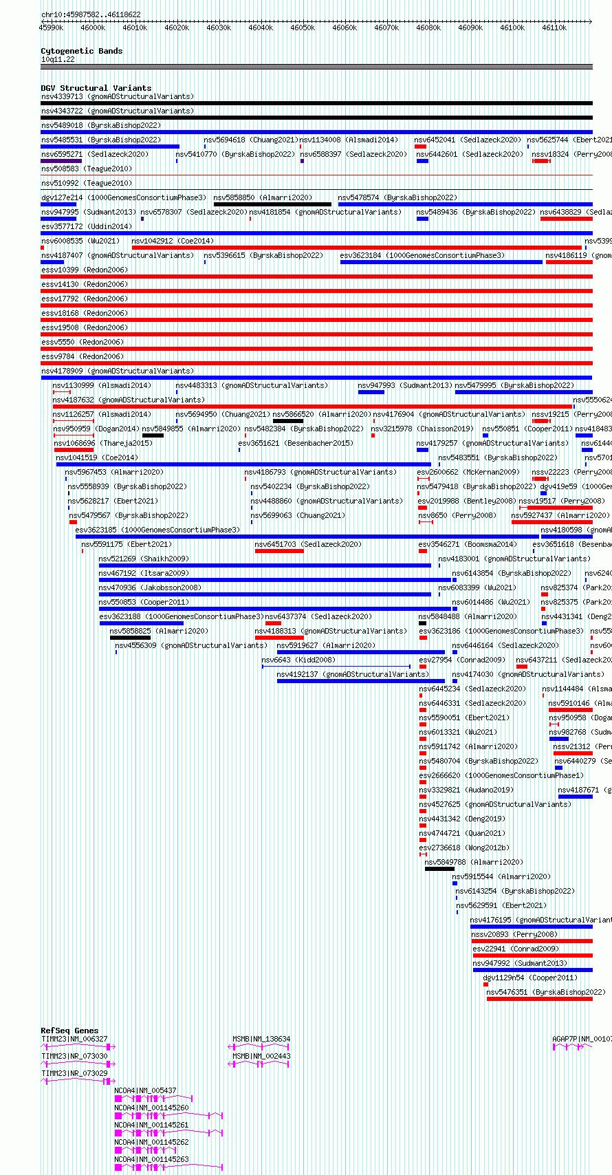 Variant DetailsVariant: nsv4178909 | Internal ID | 20394016 | | Landmark | | | Location Information | | | Cytoband | 10q11.23 | | Allele length | | Assembly | Allele length | | hg38 | 131041 | | hg19 | 131051 |