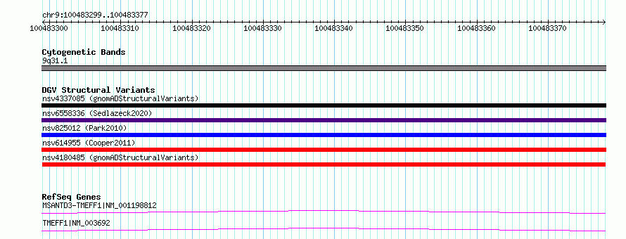 chr9:100483299..100483377hg38UCSC Ensembl
