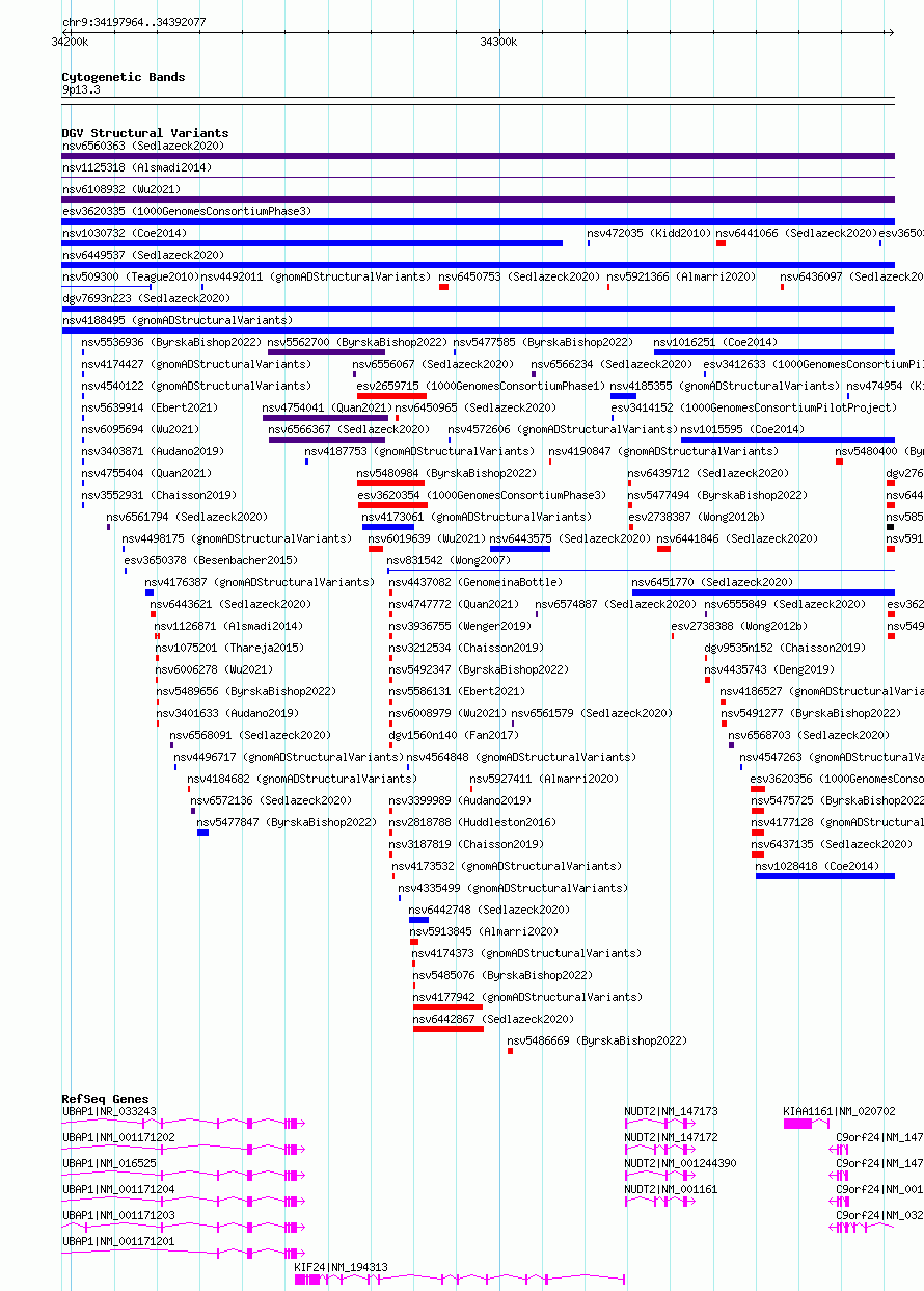 Variant DetailsVariant: nsv4188495 | Internal ID | 20400808 | | Landmark | | | Location Information | | | Cytoband | 9p13.3 | | Allele length | | Assembly | Allele length | | hg38 | 194114 | | hg19 | 194114 |