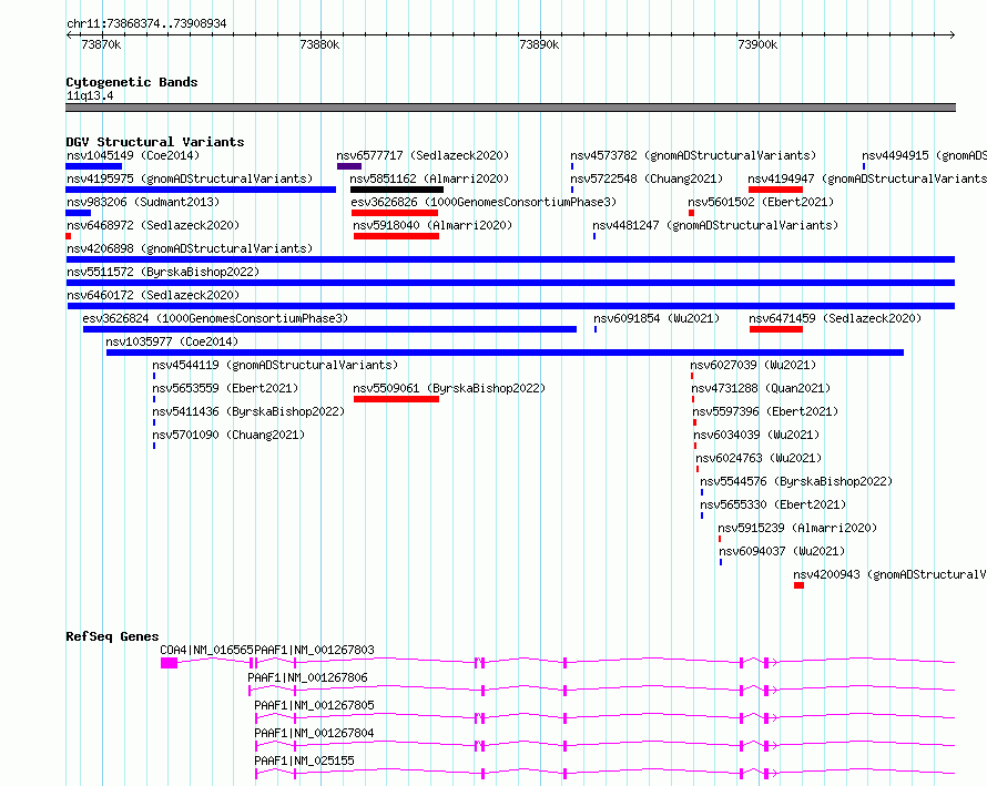 chr11:73868374..73908934hg38UCSC Ensembl