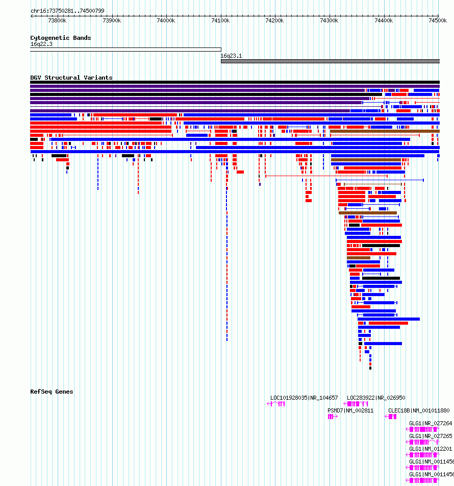 Variant DetailsVariant: nsv4247059 | Internal ID | 20442194 | | Landmark | | | Location Information | | | Cytoband | 16q22.3 | | Allele length | | Assembly | Allele length | | hg38 | 750519 | | hg19 | 750518 |