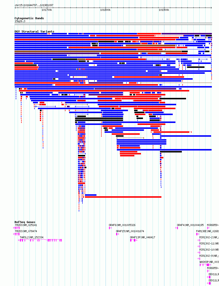 Variant DetailsVariant: nsv4250816 | Internal ID | 20444714 | | Landmark | | | Location Information | | | Cytoband | 15q26.3 | | Allele length | | Assembly | Allele length | | hg38 | 336301 | | hg19 | 336301 |
