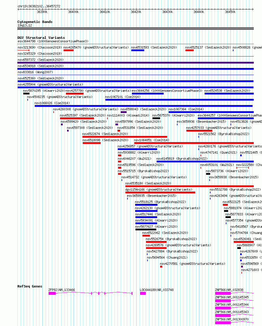 Variant DetailsVariant: nsv4255904 | Internal ID | 20448208 | | Landmark | | | Location Information | | | Cytoband | 19q13.12 | | Allele length | | Assembly | Allele length | | hg38 | 75171 | | hg19 | 75171 |