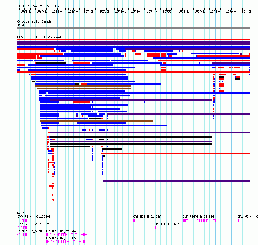 Variant DetailsVariant: nsv4259346 | Internal ID | 20450641 | | Landmark | | | Location Information | | | Cytoband | 19p13.12 | | Allele length | | Assembly | Allele length | | hg38 | 146716 | | hg19 | 146716 |
