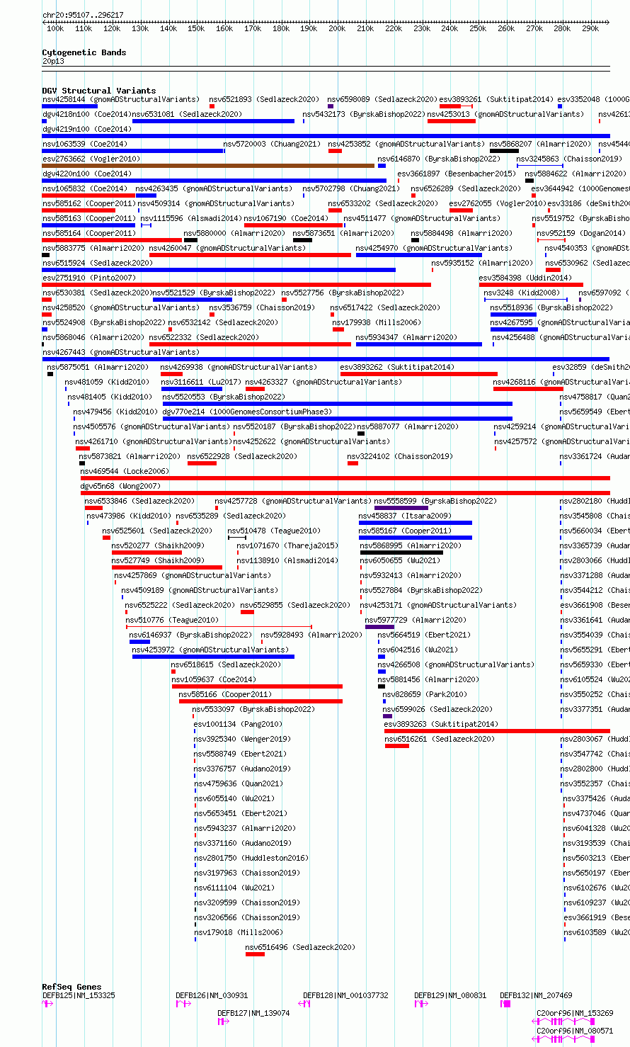 Variant DetailsVariant: nsv4267443 | Internal ID | 20456296 | | Landmark | | | Location Information | | | Cytoband | 20p13 | | Allele length | | Assembly | Allele length | | hg38 | 201111 | | hg19 | 201111 |