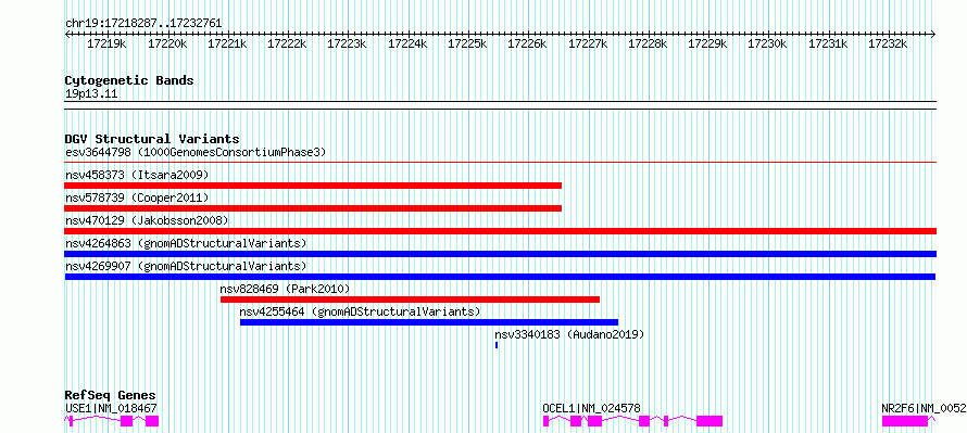 Variant DetailsVariant: nsv4269907 | Internal ID | 20111322 | | Landmark | | | Location Information | | | Cytoband | 19p13.11 | | Allele length | | Assembly | Allele length | | hg38 | 14475 | | hg19 | 14475 |