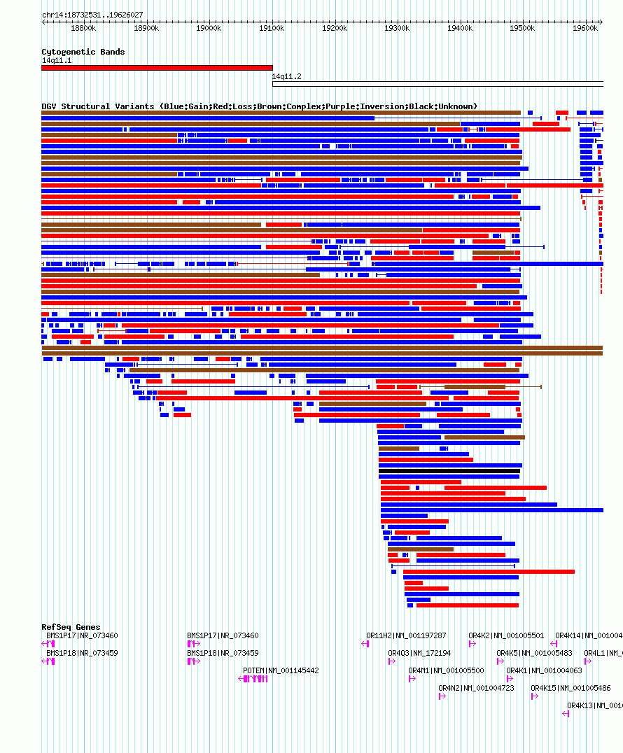 Variant DetailsVariant: nsv428292 | Internal ID | 18624742 | | Landmark | | | Location Information | | | Cytoband | 14q11.1 | | Allele length | | Assembly | Allele length | | hg38 | 1013155 | | hg19 | 893657 | | hg18 | 893497 |