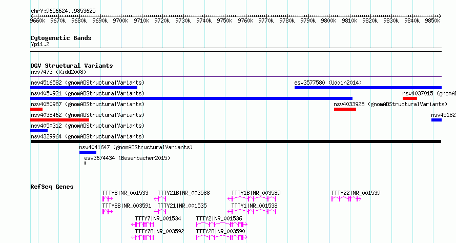 Variant DetailsVariant: nsv4329964 | Internal ID | 19838894 | | Landmark | | | Location Information | | | Cytoband | Yp11.2 | | Allele length | | Assembly | Allele length | | hg38 | 197002 | | hg19 | 197002 |