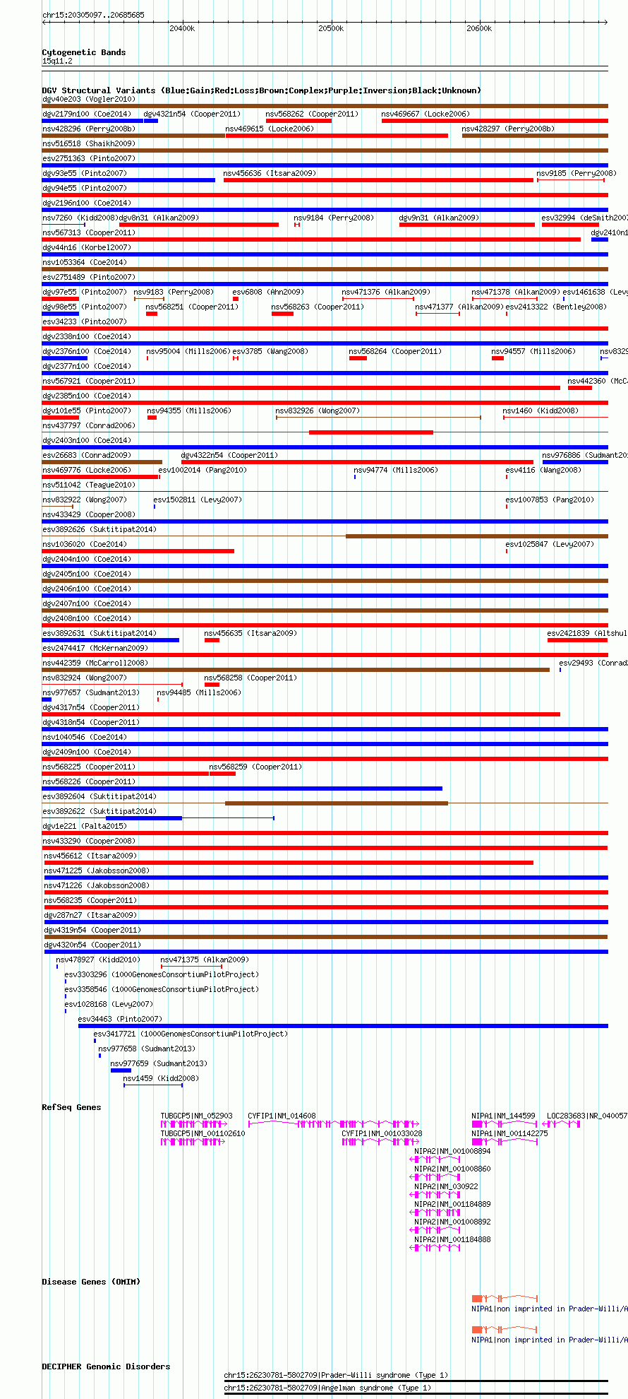 Variant DetailsVariant: nsv433290 | Internal ID | 15378558 | | Landmark | | | Location Information | | | Cytoband | 15q11.2 | | Allele length | | Assembly | Allele length | | hg38 | 380477 | | hg19 | 380512 | | hg18 | 380589 | | hg17 | 380589 |