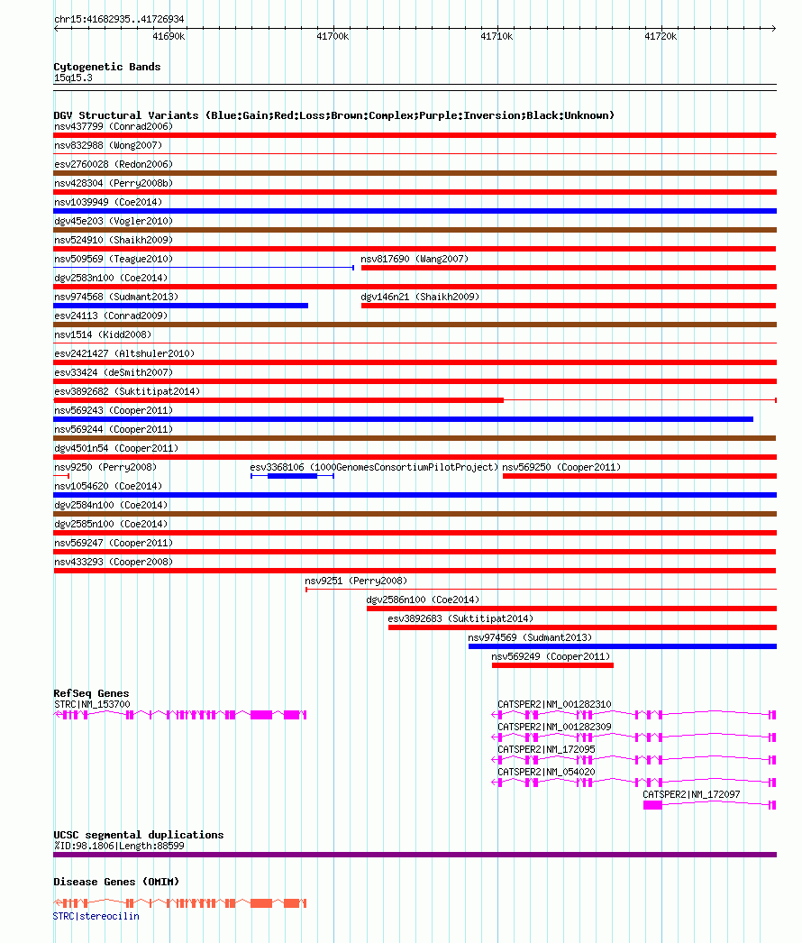 | Analysis | Large CNV discovery was accomplished by using HMMSeg, considering both the `LogR ratio' and `B-allele frequency' data for each sample simultaneously. We used a four-state model, one each for null (homozygous deletion), hemizygous deletion, diploid and amplification. Initial segmentation results were merged and filtered, requiring all variants to be larger than 1 kb in length and to span at least 10 probes for amplifications or hemizygous deletions, or 3 probes for homozygous deletions. We then used a combination of paired-end sequence maps, oligo array-CGH, and variant resequencing (described in Kidd et al. 2008) to support the calls. |
