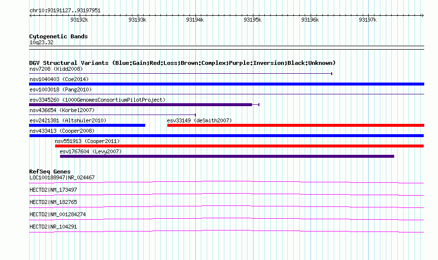 | Analysis | Large CNV discovery was accomplished by using HMMSeg, considering both the `LogR ratio' and `B-allele frequency' data for each sample simultaneously. We used a four-state model, one each for null (homozygous deletion), hemizygous deletion, diploid and amplification. Initial segmentation results were merged and filtered, requiring all variants to be larger than 1 kb in length and to span at least 10 probes for amplifications or hemizygous deletions, or 3 probes for homozygous deletions. We then used a combination of paired-end sequence maps, oligo array-CGH, and variant resequencing (described in Kidd et al. 2008) to support the calls. |
