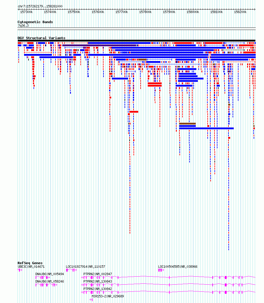 | | Variant Type | OTHER sequence alteration | | Copy Number | | | Allele State | | | Allele Origin | | | Probe Count | | | Validation Flag | | | Merged Status | M | | Merged Variants | | | Supporting Variants | nssv15791276 | | Samples | | | Known Genes | DNAJB6, LOC100506585, MIR153-2, PTPRN2, UBE3C | | Method | Sequencing | | Analysis | SV calls were generated using multi-algorithm consensus pipeline involving raw evidence assessment, filtering, clustering, genotyping, alternative allele structure resolution, and gene annotation. These methods are described in detail in the gnomAD-SV preprint [Collins*, Brand*, et al., bioRxiv (2019)|https://www.biorxiv.org/content/10.1101/578674v1], and are largely based on methods developed in [Werling et al., Nat. Genet. (2018)|https://www.ncbi.nlm.nih.gov/pubmed/29700473]. | | Platform | | | Comments | complex variant | | Reference | gnomAD_Structural_Variants | | Pubmed ID | 12345678 | | Accession Number(s) | nsv4343949