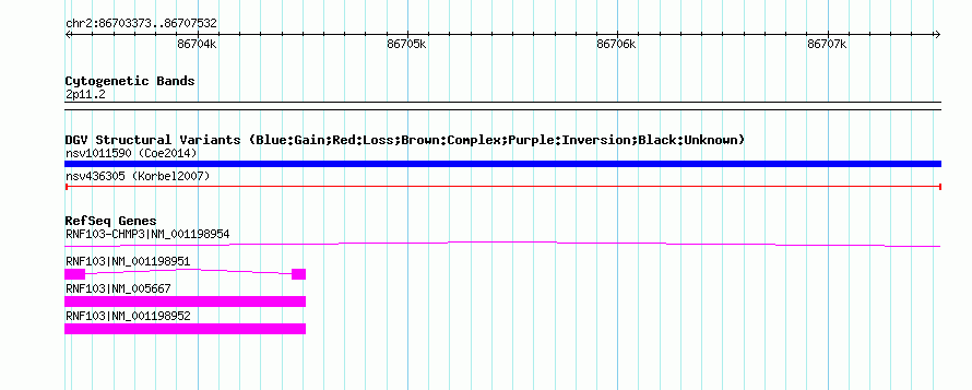 Variant DetailsVariant: nsv436305 | Internal ID | 15380791 | | Landmark | | | Location Information | | | Cytoband | 2p11.2 | | Allele length | | Assembly | Allele length | | hg38 | 4160 | | hg19 | 4160 | | hg18 | 4160 |