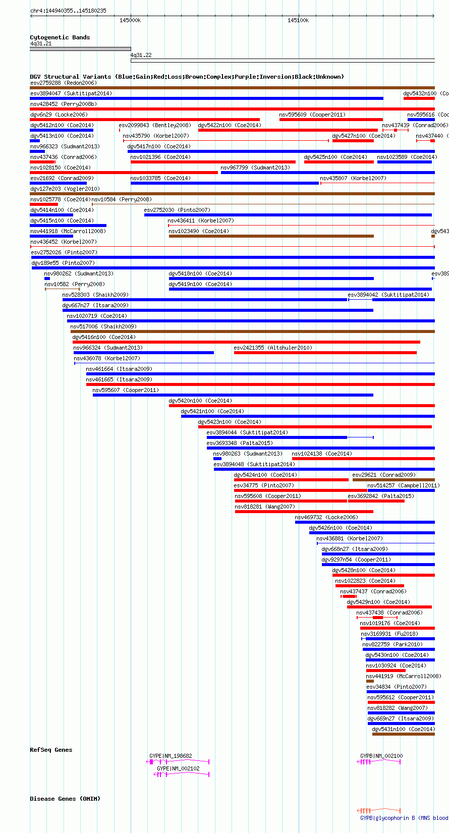 Variant DetailsVariant: nsv436452 | Internal ID | 15380938 | | Landmark | | | Location Information | | | Cytoband | 4q31.21 | | Allele length | | Assembly | Allele length | | hg38 | 239881 | | hg19 | 239881 | | hg18 | 239881 |